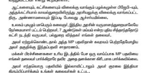 மக்கள் நீதி மய்யம் தலைவர் கமல்ஹாசனை விமர்சித்துப் பேசிய தமிழ்நாடு பாஜக முன்னாள் தலைவர் அண்ணாமலையைக் கண்டித்து மக்கள் நீதி மய்யம் ஊடகம் மற்றும் செய்தித் தொடர்பாளரும் மாநிலச் செயலாளருமான முரளி அப்பாஸ் கண்டனம் தெரிவித்துள்ளார். கண்டன அறிக்கை இதுகுறித்து அவர் …